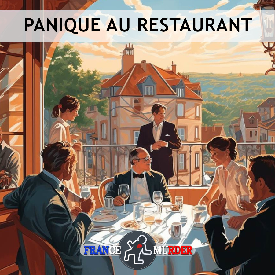 Le nom du restaurant de Pierre Troismaigres a mis longtemps à être décidé mais personne ne s’en est vraiment préoccupé car ce qui a toujours compté c’était le génie créatif de sa cuisine. Tous les gens avaient pris l’habitude de l’appeler « le restaurant au bout de la rue » et finalement par dérision Pierre a fini par le baptiser officiellement du nom de « AU BOUT DE LA RUE ». Quel que soit son nom c’est l’endroit où les VIP devaient : artistes, politiciens, sportifs et célébrités en tous genres se bousculaient pour y réserver une table. Ce soir était une date particulière puisque le grand critique culinaire Gohé Millault était attendu pour un repas d’évaluation. L’ensemble du personnel était arrivé dès 10 heures du matin pour s’assurer que tout soit en place. Après un break réglementaire de 15H00 à 19H30 toute la brigade était revenue prendre sa place mais hélas une macabre découverte les attendait : le chef cuistot était allongé sur le sol de la cuisine au milieu d’une flaque composée de son sang et de soupe à la tomate. Pierre Troismaigres était certes doué mais apparemment il n’avait pas que des amis ! Mettez vos plus beaux habits de soirée et venez résoudre … Panique au Restaurant